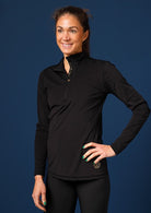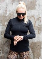 Half zip running jersey with a perfect fit and function combined with stylish and sporty design. The light weight long sleeve jersey is suitable for both outdoor and indoor training due to its thin and breathable material. Top can be worn with a baselayer or under a wind jacket in colder weather. In light and soft material with a silky touch that breathes. Power Woman in gold print on inside zip-placket and back.